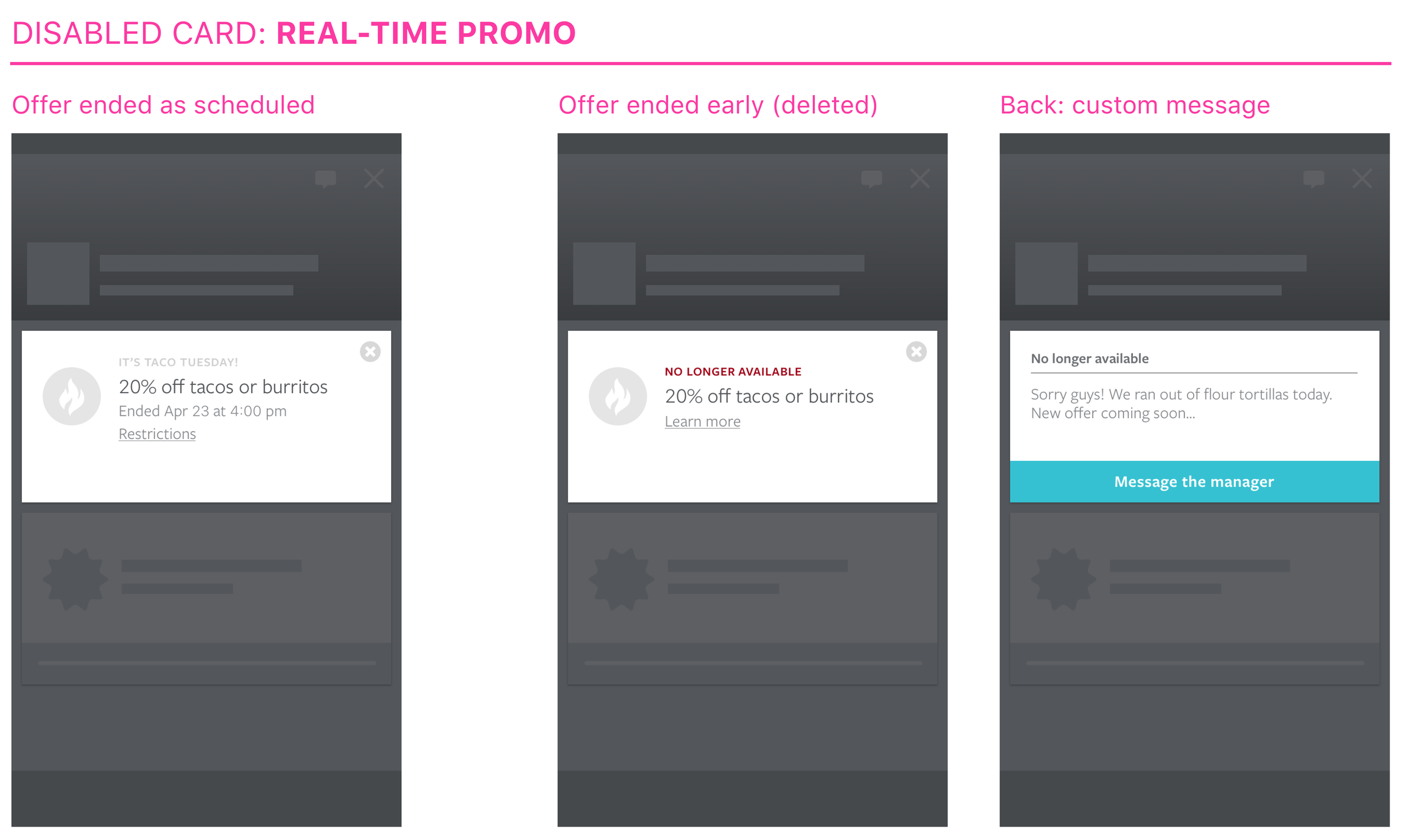 For Real-Time Promos, a UI distinction was added to show when offers end as scheduled or when a merchant removes an offer early.