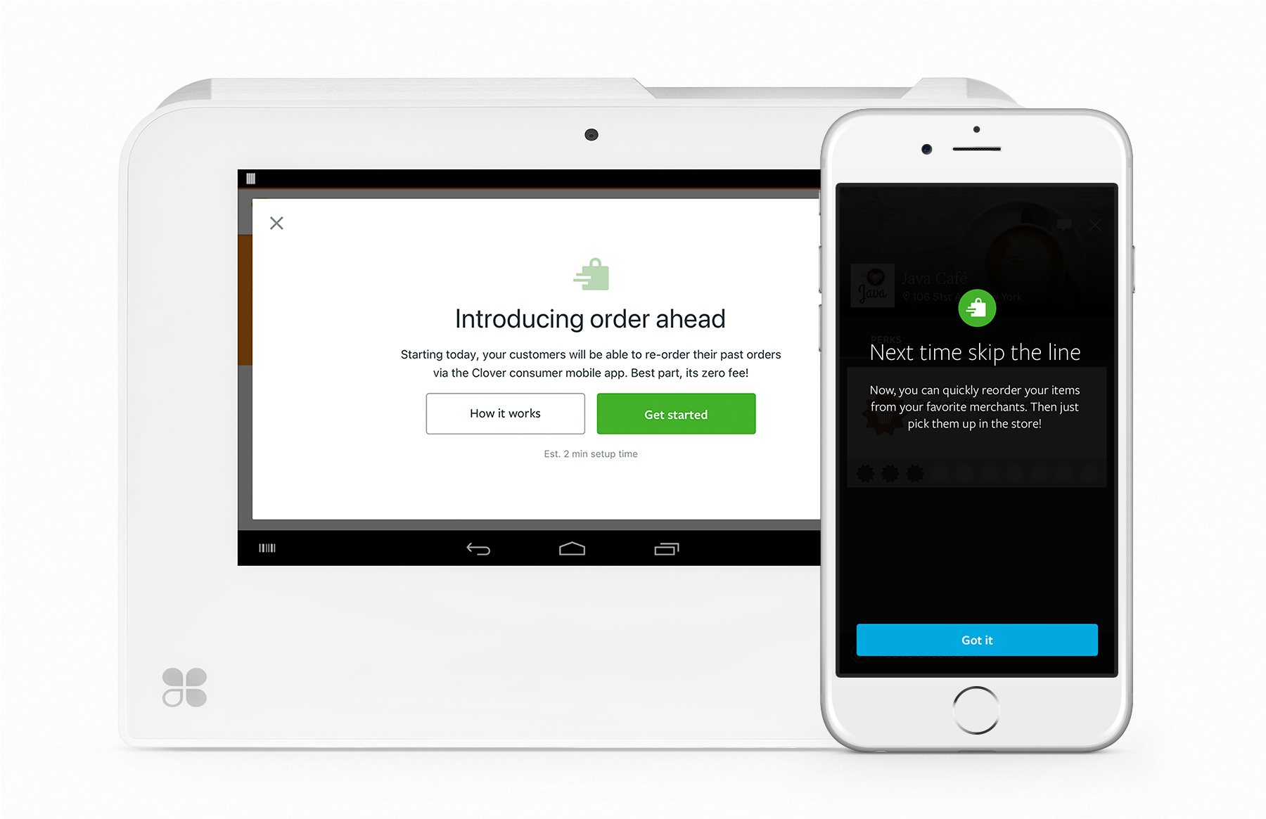 A new product feature that allows customers to pay with their phones. Payment optimizations include the addition of tipping, transaction history, and integration with Clover Gift Cards.
